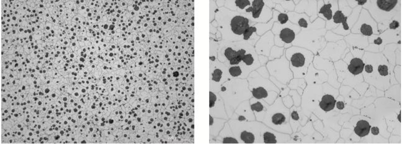 Buna görə də, empirik müşahidə, dəmirli dəmirdə karbon ekvivalentinin yuxarı həddi, üzən qrafit əridilmiş dəmirdə (təxminən 1200 ° C) karbon tərkibində karbon tərkibində olan karbon tərkibində karbon tərkibi, qrafit sahələrinin orta ölçüsünə və ya sayına aid olan qrafitin miqdarına təsir göstərir. Tipik olaraq, karbon tərkibiDürcü dəmir tökmə2% və 3,9% aralığında, lakin karbon tərkibinin azaldılması, çuqunun mexaniki xüsusiyyətlərinə təsirini başa düşmək çox vacibdir. Bu, quruluşa, ölçülərə, divarın qalınlığına və qonşu təyyarə divarlarının divar qalınlığına görə səhvlərə görə nəzərə alınmalıdırDürcü dəmir tökmə. Təxminən 4% -dən 2,5% -ə qədər olan daraltil dəmirdə karbon tərkibini azaltmaq, gərginlik gücünü və gəlir gücünü bir qədər artıra bilər (təxminən 23 ilə 31-dən 31-ə qədər n / mm²) və eyni zamanda təsir dəyərlərində əhəmiyyətli yaxşılaşdırılması ilə uzatma artır.